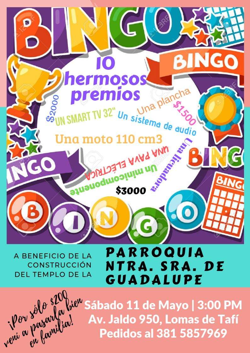 La Parroquia Ntra Señora de Guadalupe invita una vez mas a los vecinos y a la comunidad en General a Participar en el Bingo Parroquial y colaborar de esa forma en la contrucción del Templo.