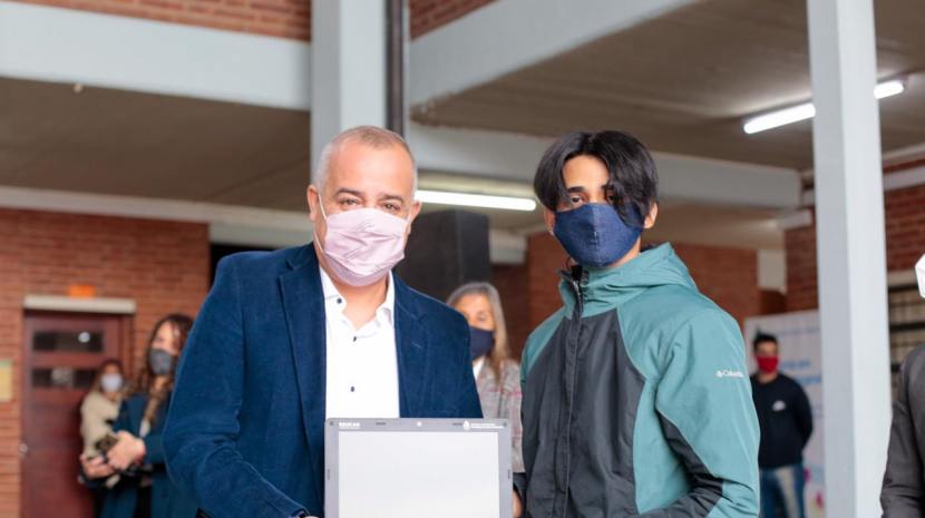 El intendente Javier Noguera junto al ministro de Educación Juan Pablo Lichtmajer encabezó el acto de entrega de netbooks en la Escuela de Comercio Dr. Alejandro Heredia y representantes de los establecimientos secundarias Salas y Valdés, Osvaldo Costello, Lomas de Tafí, Barrio Policial y Tafí Viejo. Bajo estrictos protocolos sanitarios, los chicos recibieron las netbooks enviadas por el Ministerio de Educación de la Nación.