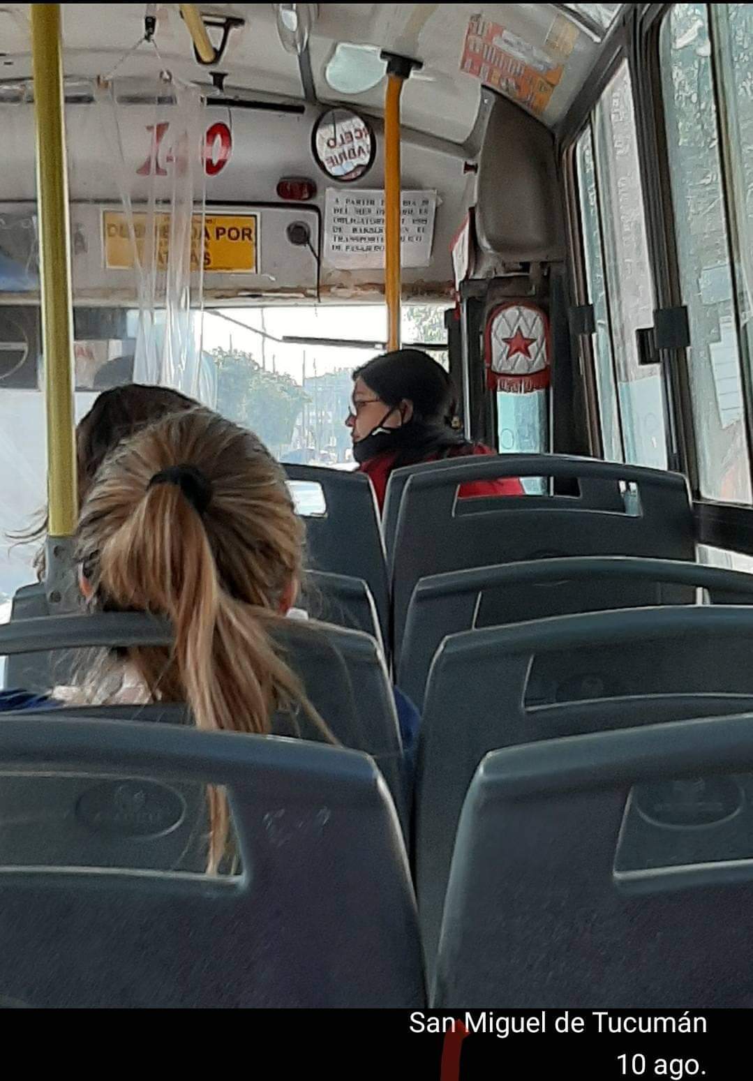 Esto fue ayer. Hoy fue peor..la descarada..se paseaba x todo el vehiculo sin barbijo..luego viajo colgada del chofer desde centro hasta av Francisco de aguirre y mitre..el chofer sin barbijo..