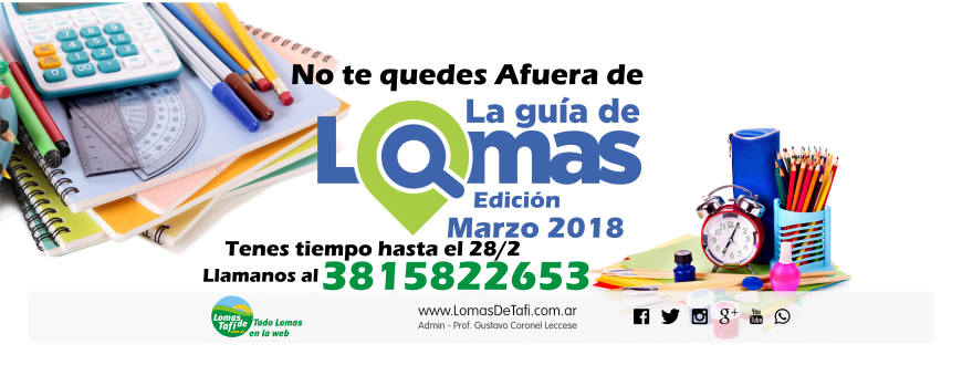 Desde el año 2013, La Guia de Lomas de Tafí, ofrece la mas completa información sobre locales comerciales y servicios para Lomas de Tafí, Barrio Policial 3, Barrio Judicial, Villa Las Flores y Tafí Viejo Centro. Por consultas puedes hacer click en este link: http://bit.ly/LaGuiaWhatsApp Hoy se está preparando la Edición de Marzo 2018 y…
