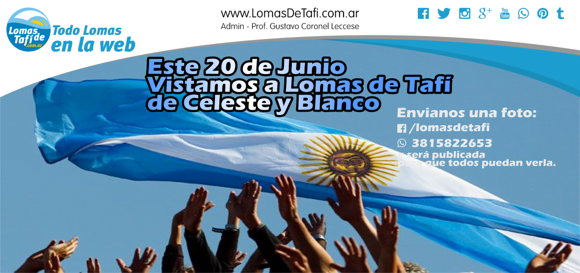 Mañana 20 de Junio, recordamos la creación de nuestra enseña Patria y es por eso que desde www.lomasdetafi.com.ar queremos hacerles una propuesta. «Queremos invitarlos a participar de esta celebración, ornamentando o decorando su hogar o local comercial con los colores de Argentina, simbolizando de esta manera la importancia de nuestra bandera con los colores que…