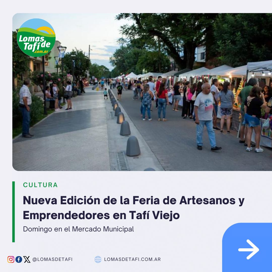 Tafí Viejo se prepara para recibir el próximo domingo una nueva edición de la Feria de Artesanos y Emprendedores, un evento que se ha convertido en un referente del talento local y la creatividad. La cita se llevará a cabo en las inmediaciones del Mercado Municipal, sobre calle San Martín desde Uttinger a Monteagudo, de…