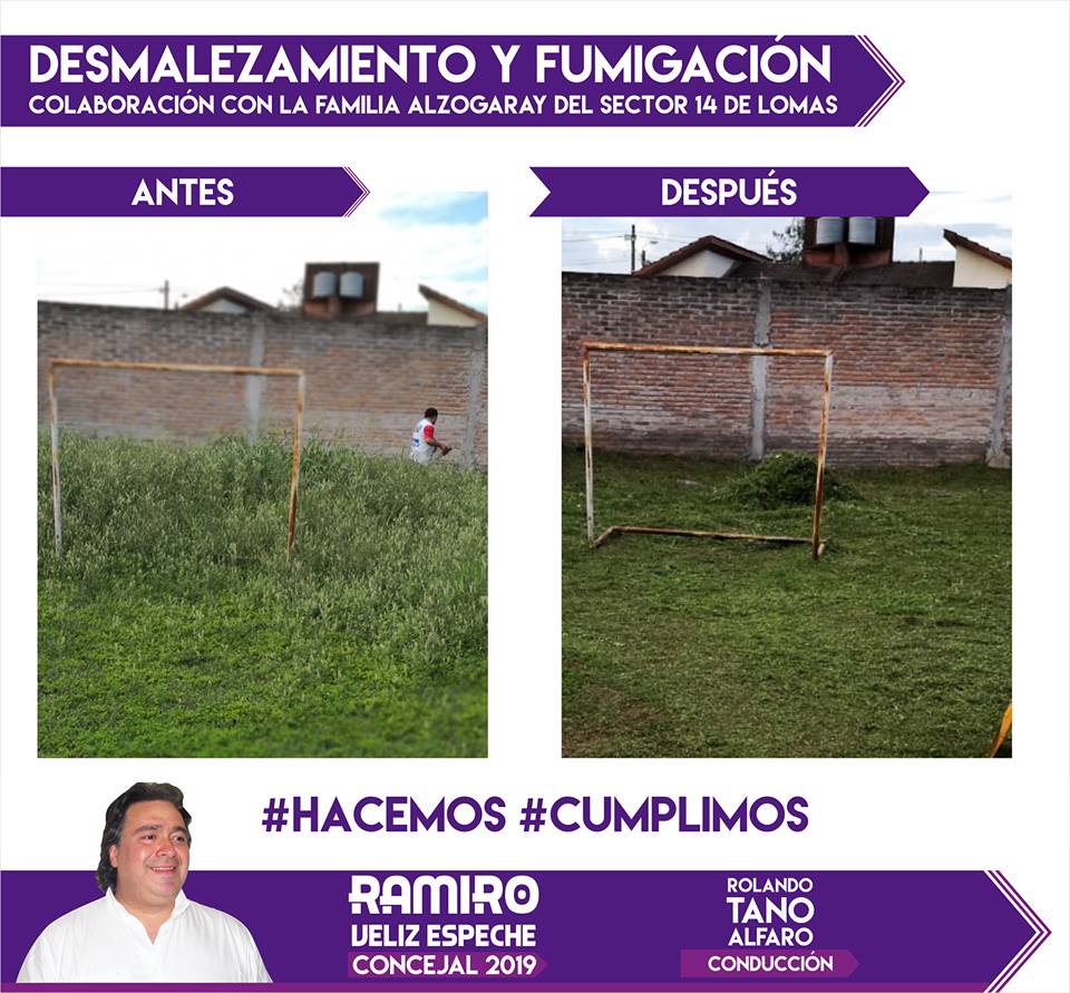 El vecino Ramiro Veliz Espeche, candidato a Concejal, continúa su labor de colaborar con la comunidad de Lomas de Tafí «El pasado lunes 29 de octubre realizamos un operativo de limpieza, fumigación y corte de césped en el barrio Lomas de Tafi, en esta oportunidad colaboramos con la familia Alzogaray del Sector 14 (Mz 7-…