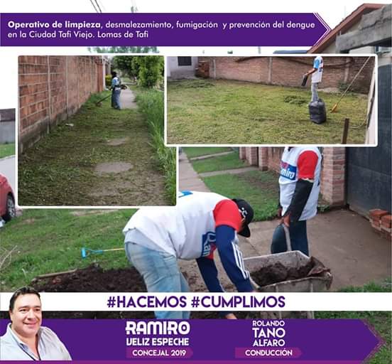 Operativo de limpieza, desmalezado, fumigación y prevención del dengue en Tafi Viejo. La de Agrupación de Ramiro Veliz Espeche, viene realizando un fuerte operativo de limpieza, desmalezado, fumigación y prevención del dengue en varios sectores de Lomas Tafi, «sabemos que en esta época del año las lluvias son más frecuentes que lo habitual, provocando que…