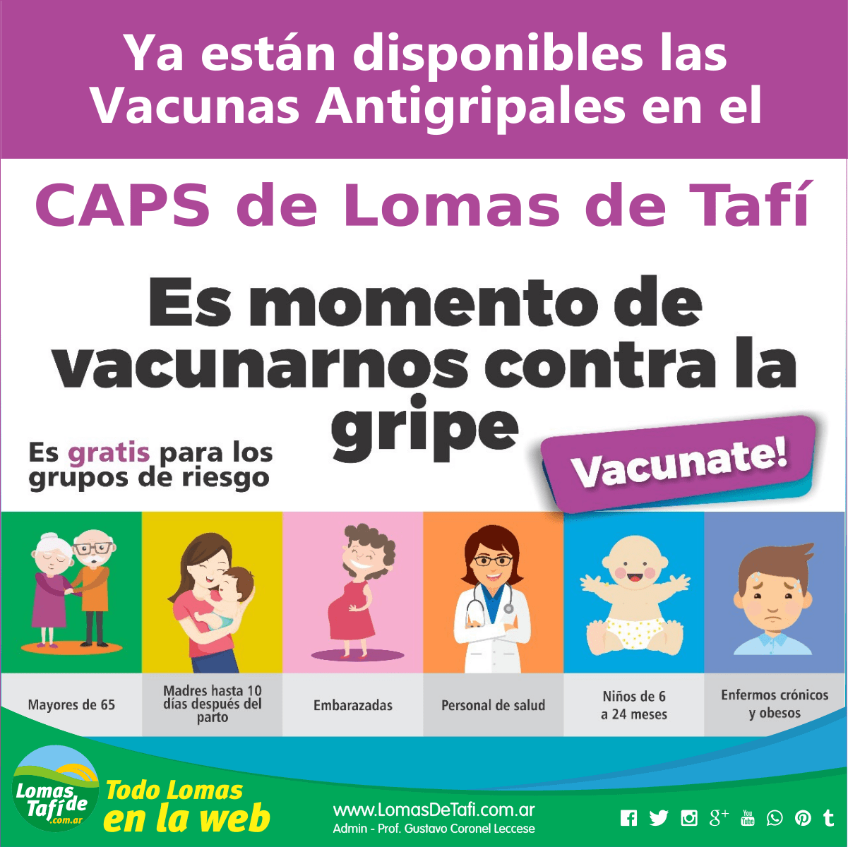 Desde el CAPS de Lomas de Tafí nos comunican que ya cuenta con las dosis para la campaña de Vacuna Antigripal 2018, que se colocan de forma gratuita para los grupos de Riesgo, en especial se invita a los padres de niños de hasta 2 años de edad a acercarse para que sean vacunados. La…