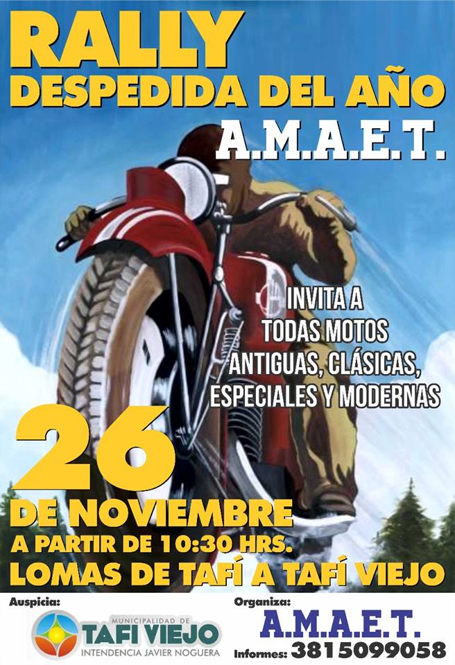 Este fin de semana los amantes de las motocicletas tendrán la posibilidad de ver en acción a rodados de diferentes características. El Rally Despedida de Año tendrá su punto de largada en el megabarrio Lomas de Tafí el sábado a partir de las 10:30 horas. Están invitados quienes tengan motos antiguas, clásicas, especiales y modernas….