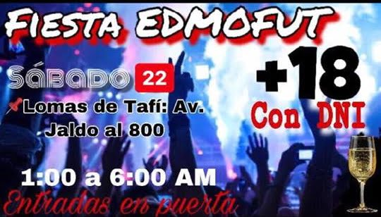 Para celebrar el Fin de Año, Edmofut, realizara una Fiesta para Mayores de 18 años el próximo sábado 22 en su local de Av Jaldo al 800. Las entradas esta a la venta en EDMOFUT y el eventos e realizará entre las 1 y 6 de la mañana.
