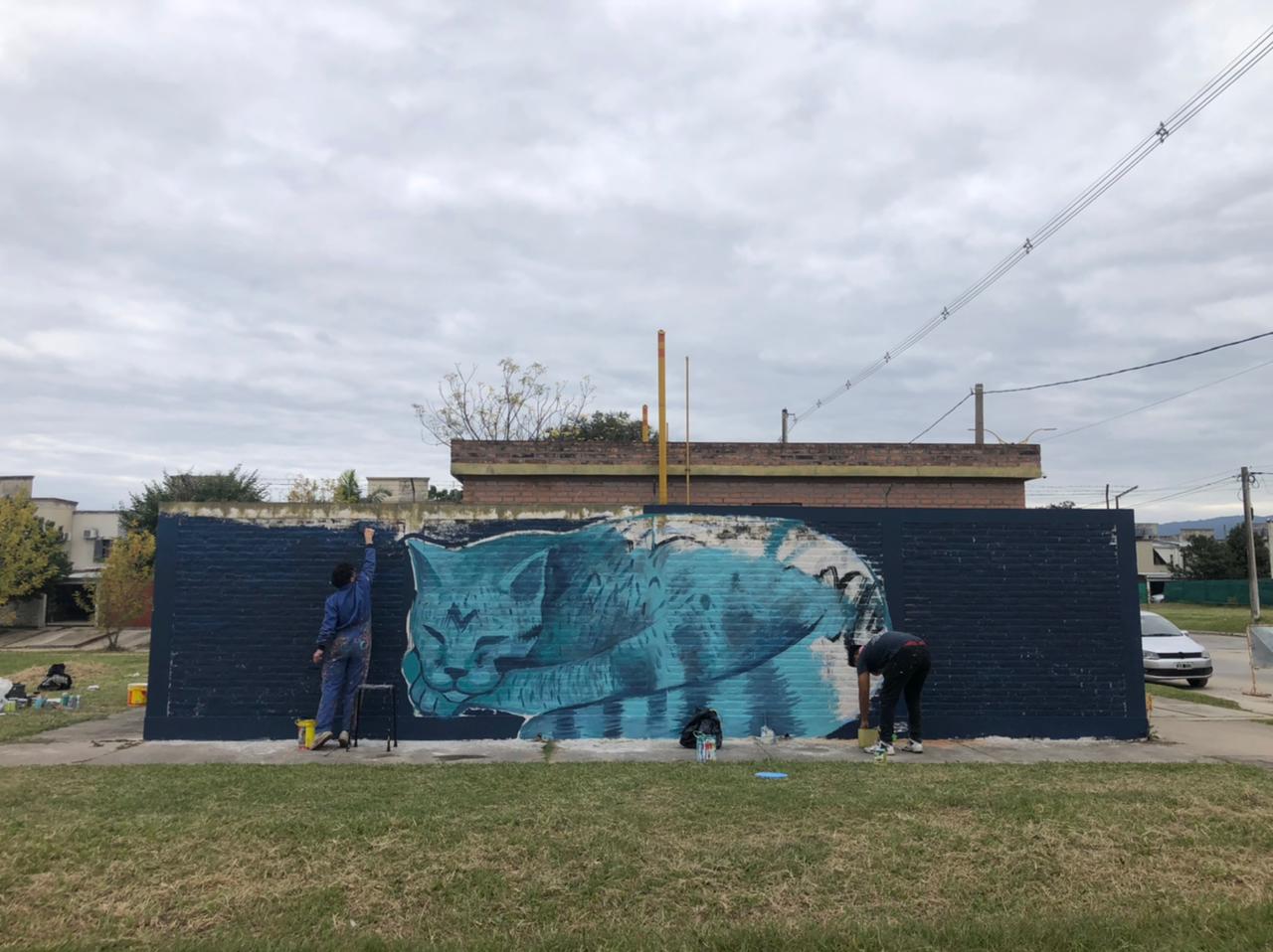 No contamos con ningún apoyo ni privado ni estatal para estos trabajos, más que con el afecto y la contención de lxs seres queridxs. Un amigo nos regaló una escalera plegable, otros nos regalaron las pinturas que les sobraron de sus casas, incluso nosotros mismos pintamos con las pinturas que nos pueden sobrar de los trabajos que realizamos. Lo hacemos con la intención de visibilizar nuestro trabajo, empatizar con la sociedad con obras que funcionen como una suerte de caricia visual en el paisaje.