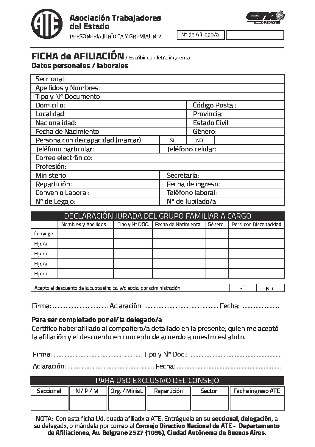 Ficha Afiliacion ATE