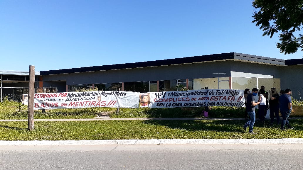 Augusto Huergo, uno de los presentes, nos comentó que hartos de esta situación que lleva ya 8 años y tomaron esta decisión para visibilizar el problema ante los medios y la comunidad en general. Solicitan que el IPV, de por terminado el contrato con la Empresa y busque otra que termine de este Centro de Compras que brindaría una solución para ellos y para los vecinos de Lomas de Tafí.