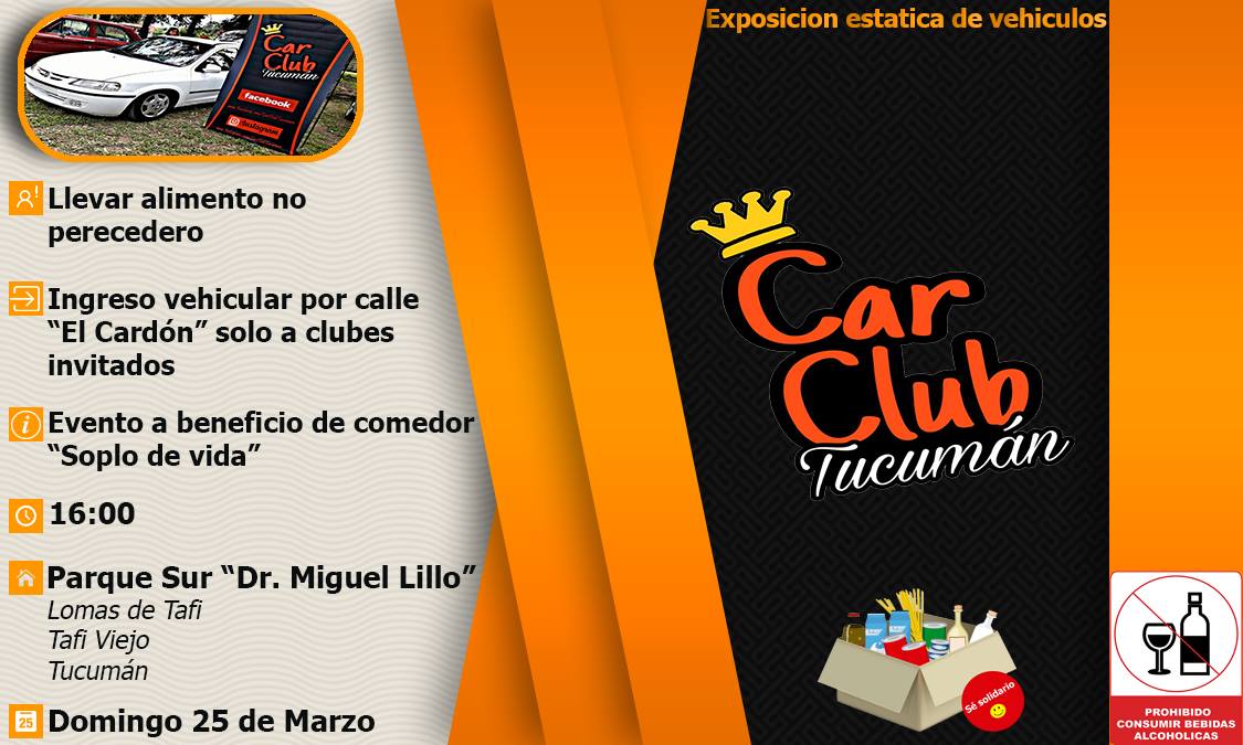 El próximo domingo 25 de Marzo de 16 a 20 hs se realizará en el Parque Sur Dr Miguel Lillo (Ex Parque Sur) en Barrio Lomas de Tafi un evento solidario, para compartir una hermosa tarde de autos y recolectar donaciones!