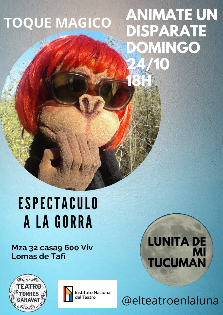 - Domingo 24 a las 18, el grupo Toque Mágico presentará un espectáculo de títeres llamado “Anímate un Disparate”. Hace referencia a que una caja de regalo desata un disparate de historias unidas por una titiritera-narradora. Una mona que no quiere ser mona, un gato y un ratón envuelto en un juego de persecución absurdo, un oso hormiguero con un amor imposible. Tres relatos unidos por un final mágico.