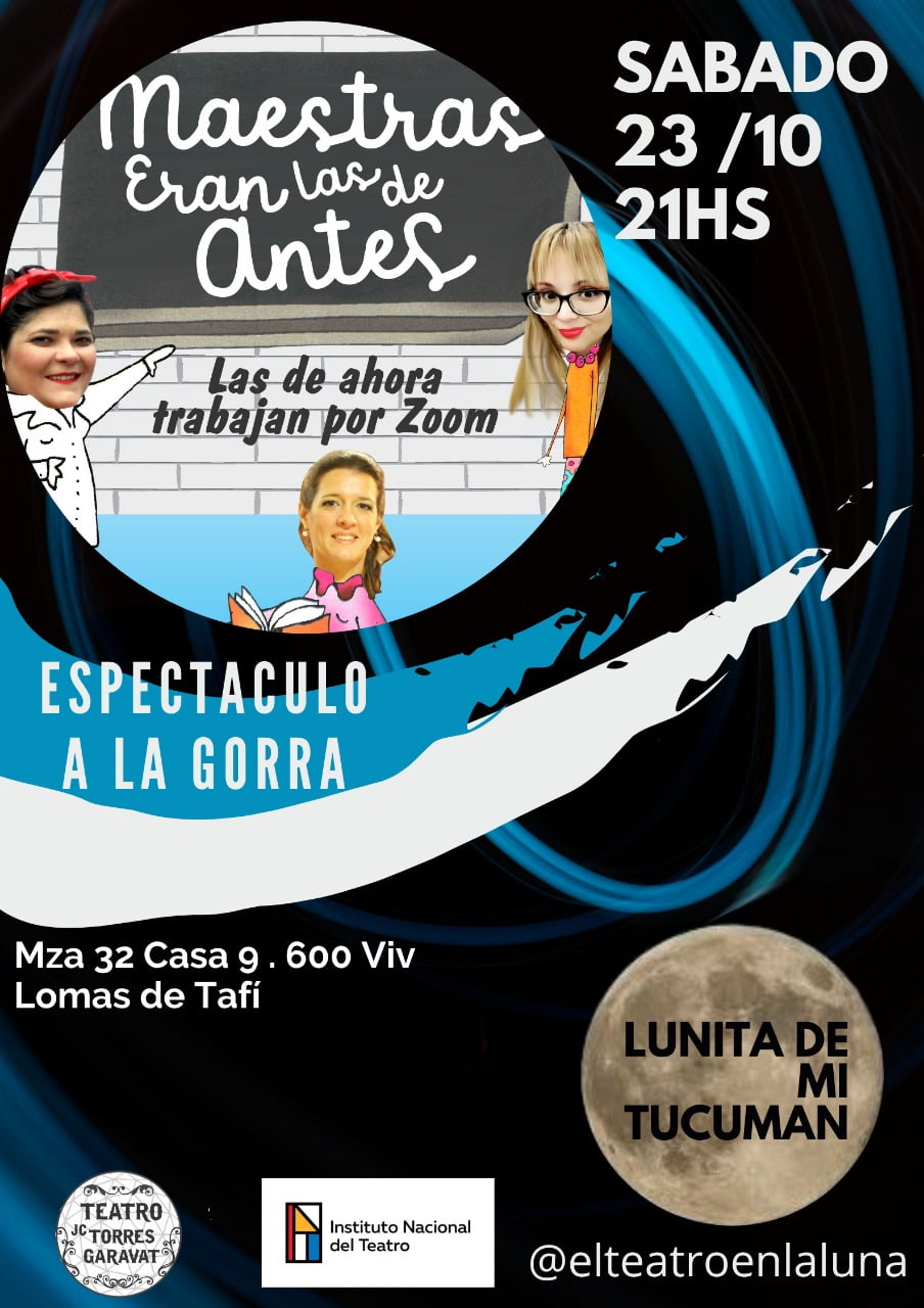 - Sábado 23 a las 21, el grupo Atrapa sueños presentará “Maestras eran las de antes”. Una comedia para jóvenes y adultos. Con las actuaciones de Jackie Anastasio Salas, Celeste Tribulo y Gabriela Aguirre; libro y dirección Fabricio Origlio. Trata una mirada con mucho humor, sobre la escuela y los maestros en tiempo de pandemia, con burbujas, alcohol en gel, barbijo y distanciamiento.