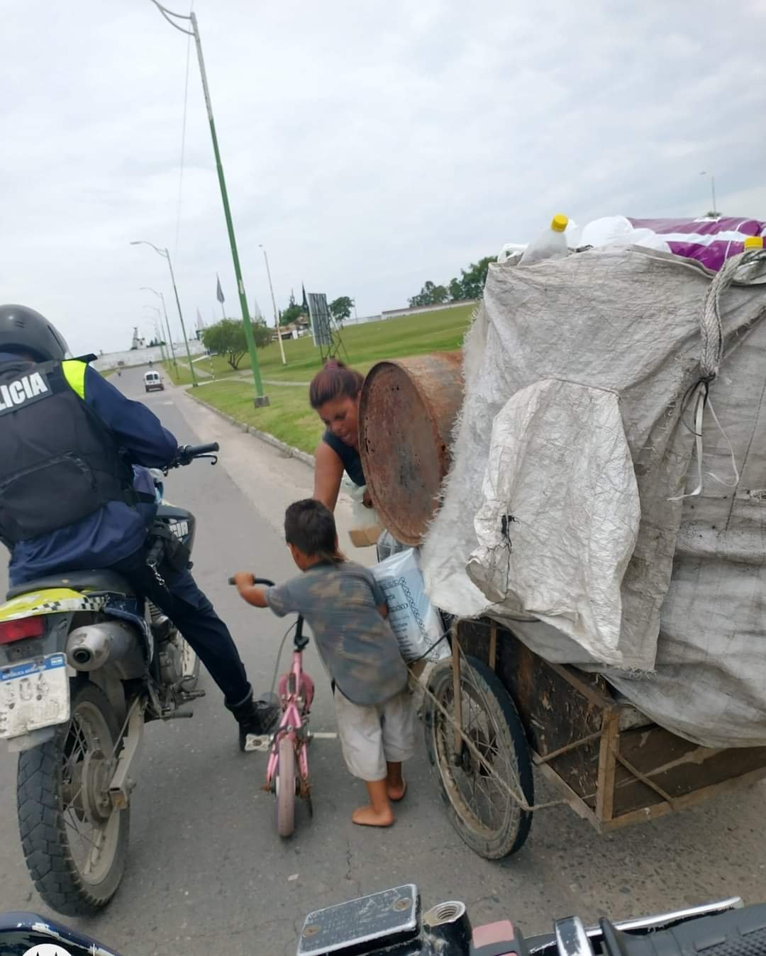 Hoy trabajando, mi compañero me dijo que regresemos por donde habíamos pasado, volvimos a dónde iban caminando una madre y sus hijos, la señora es recolectora y es acompañada por sus dos hijos menores .