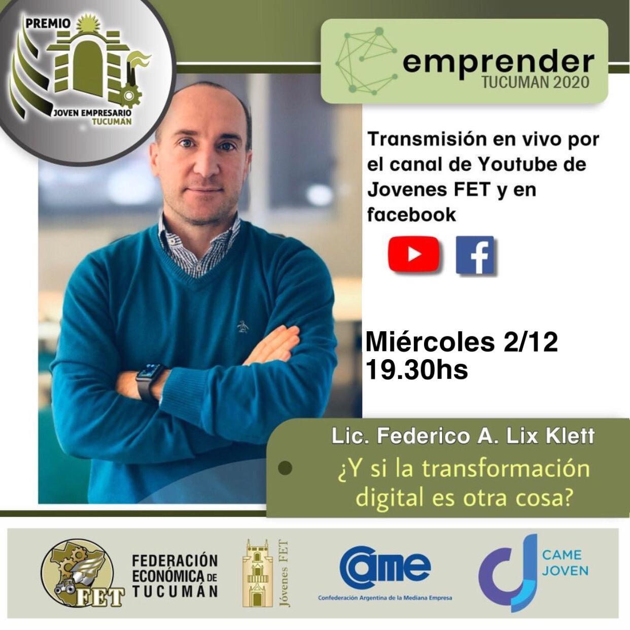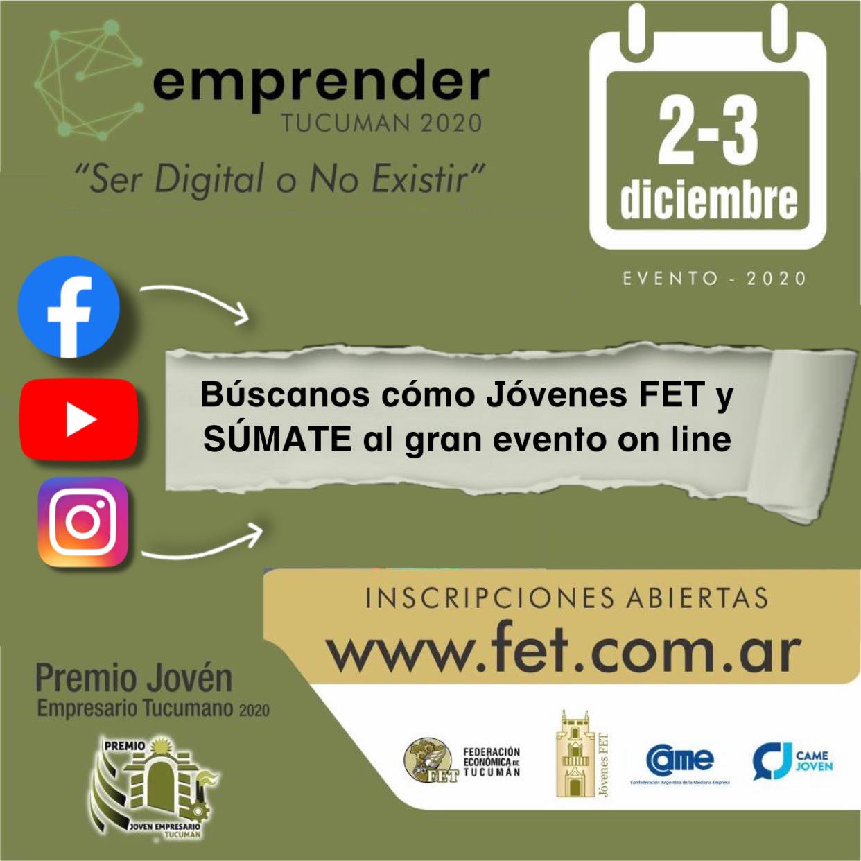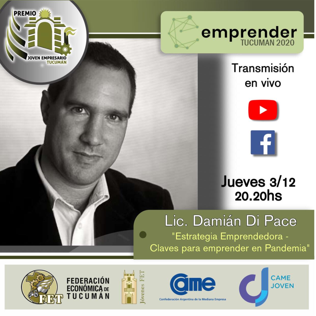 “Dentro del marco del Emprender Tucumán 2020 también queremos ofrecer el premio Joven Empresario tucumano 2020. Asimismo será transmitido por el canal de YouTube de Jóvenes FET a partir de las 18:45 hs los dos días (2 y 3 de diciembre)”, afirmó Coria.