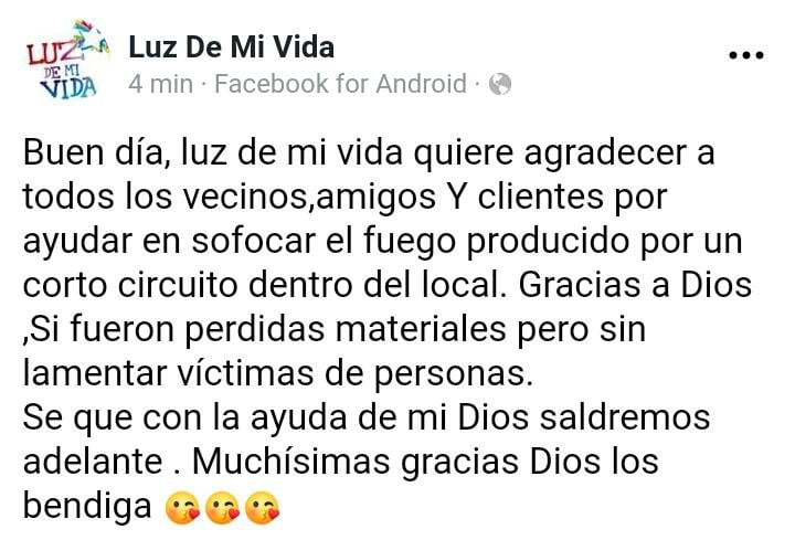Sofocado el fuego en el Facebook oficial del local publicaron este mensaje: