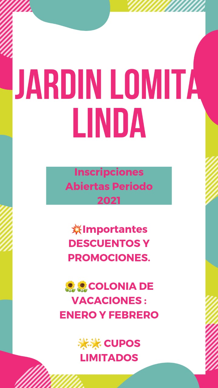 El Jardín Maternal «Lomita Linda» abrirá su colonia de verano el 4 de Enero para niños desde los 2 hasta los 6 años inclusive.