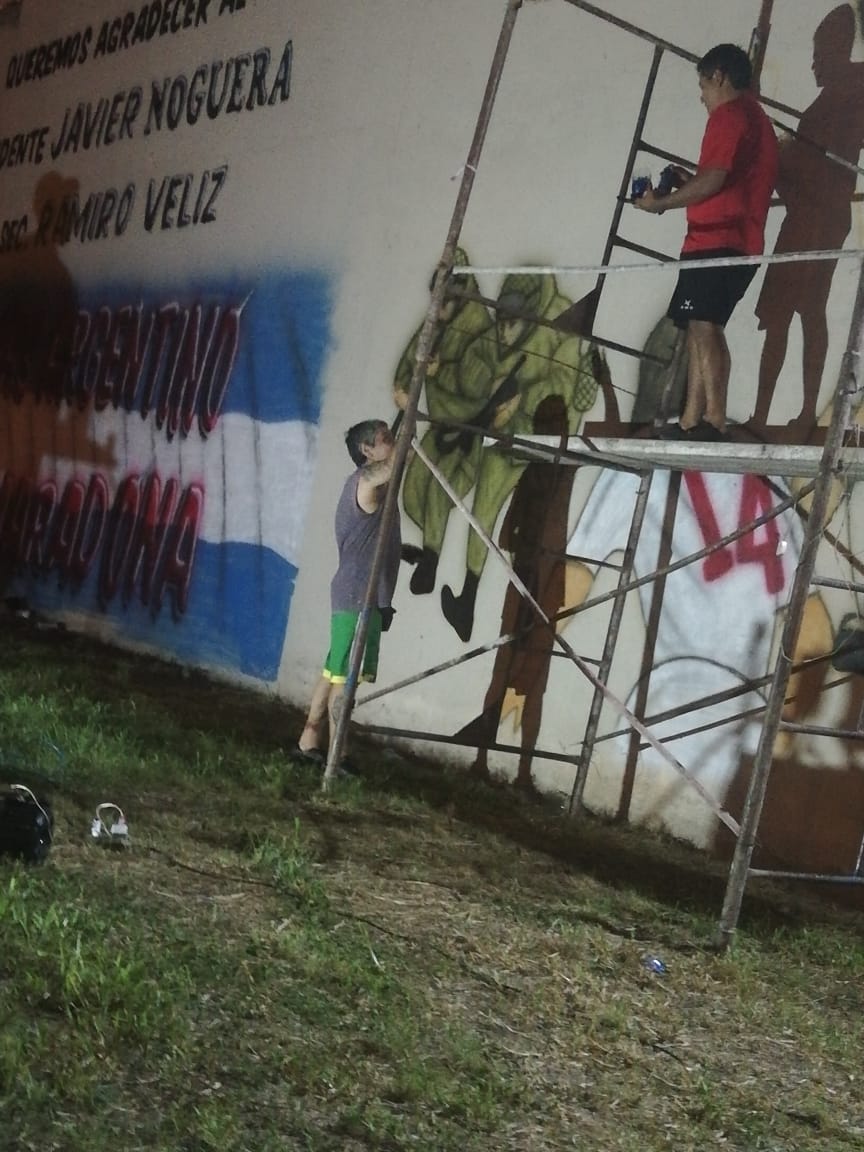 Según revela Carlos Sebastián, el homenaje demandó tres días de arduo trabajo entre el viernes y el domingo pasado. La idea había surgido dos semanas atrás cuando comenzaron las gestiones para conseguir los materiales para el mural que, finalmente, fueron otorgados por el municipio de Tafí Viejo. “Estamos contentos de poder darle vida a la pared. Fue algo hermoso porque el sábado había familias que nos veían trabajar y se acercaban para convidarnos agua o gaseosa. Gracias a Dios pudimos concretar este sueño que todos teníamos”, comenta. La inauguración oficial del mural estaba prevista para hoy con la presencia de ex combatientes de Malvinas de Lomas de Tafí, pero se pospuso debido a la lluvia.