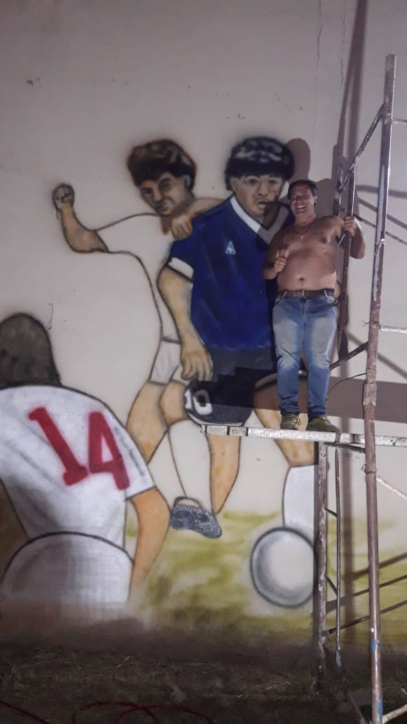 De la gesta militar a la gesta deportiva, de los pozos de zorro en las islas a la corrida memorable en el estadio Azteca de México, de la herida siempre abierta de la guerra a la redención futbolística. En Lomas de Tafí, Diego Armando Maradona gambetea jugadores ingleses custodiado de cerca por los soldados argentinos. A sangre y sudor quedó plasmado un nuevo homenaje, otro más entre los tantos que se repiten desde el fallecimiento del ex capitán de la selección nacional el pasado 25 de noviembre. Mientras la patria futbolera no deja de llorar al crack, las paredes tucumanas continúan recordándolo. El Diego y los ex combatientes, los únicos héroes en este lio.