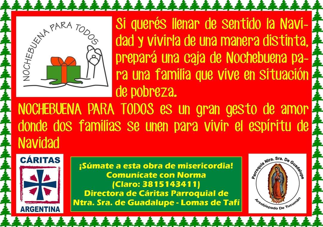 La Parroquia Ntra Señora de Guadalupe de Lomas de Tafí se suma al Proyecto de CARITAS, 👉🏻 Noche Buena para Todos 👈🏻.