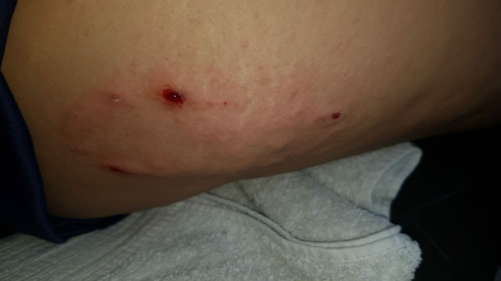 Vecina de lomas 600, compartió en nuestros grupos de WhatsApp, como la dejo un perro, que la habría atacado en la zona de Castillo.