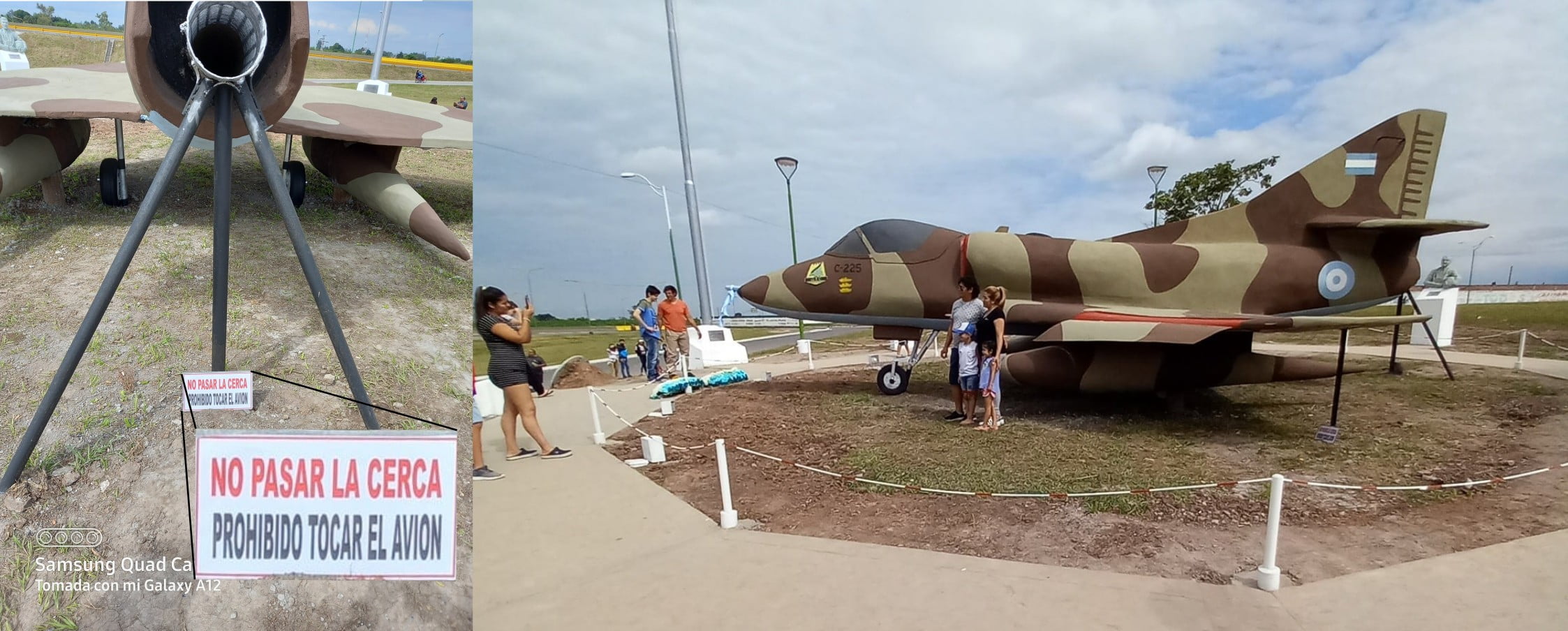 Ya circulan por las redes fotos de personas que no respeta el letrero que indica que no se puede pasar la cinta que rodea al Avión, construido como homenaje a los Halcones de Malvinas. Entre todo cuidemos lo que es de todos!