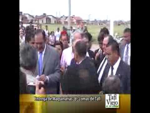 Video Publicado por la Municipalidad de Tafi Viejo en YouTube. Con la presencia del Gobernador de la Provincia, CPN José Alperovich, y del Intendente Javier Pucharras, se procedió a la entrega de nuevas maquinarias a la Delegación Municipal del Bº Lomas de Tafí.