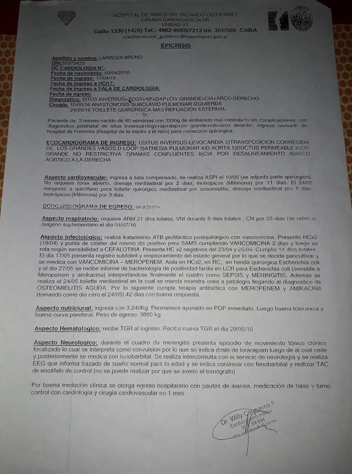 El hijo de Marisol, nació con cardiopatía congénita, por lo que tienen que viajar a Buenos Aires el próximo 28 de octubre en el hospital de Hospital Infantil Dr. Ricardo Gutiérrez y no saben que tiempo deberán quedarse allá.