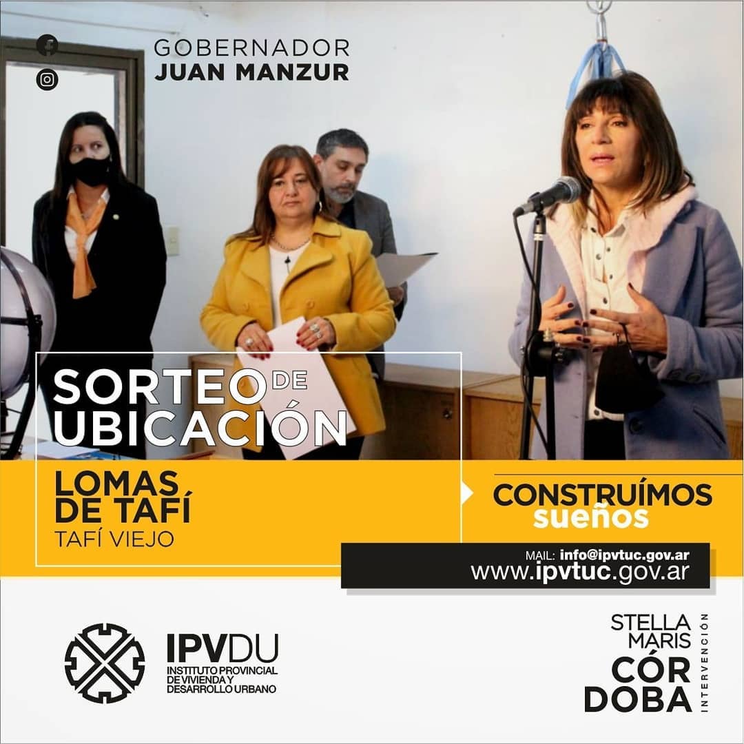 El pasado martes 1 de septiembre se llevó a cabo el sorteo de la ubicación de los adjudicatarios de 166 viviendas del Instituto Provincial de la Vivienda y el Desarrollo Urbano (IPVDU) en Lomas de Tafí. Se trata de los beneficiarios que salieron sorteados en 2019.