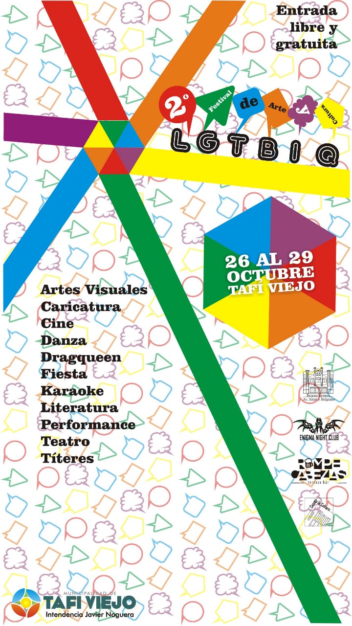 Organizado por la Secretaría de Culturas de la Municipalidad de Tafí Viejo se llevará adelante el próximo Jueves 26 al Domingo 29 de Octubre el 2do Festival de Arte y Cultura LGBTIQ en Tafí Viejo