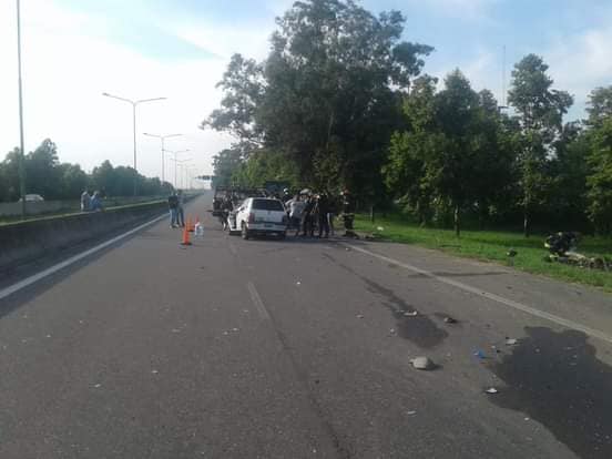 Por, detrás de esto, una motocicleta conducida por una mujer, terminó envistiendo al auto y el rodado quedó sobre la banquina, también fue trasladada a un nosocomio.