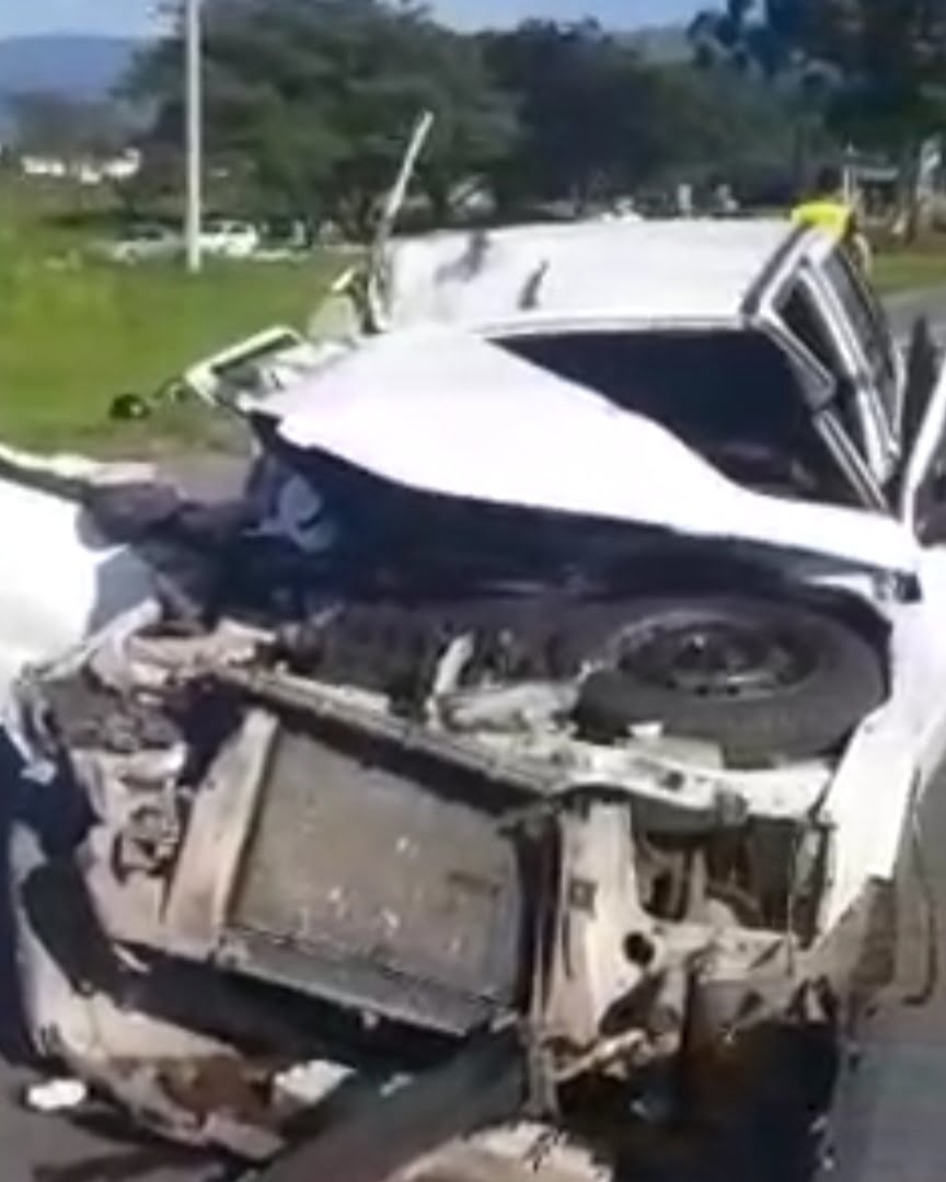 El siniestro se produjo entre un auto, que se encontraba trabajando como taxi, Fiat Uno, y circulaba en el mismo sentido que un camión que transportaba soda.