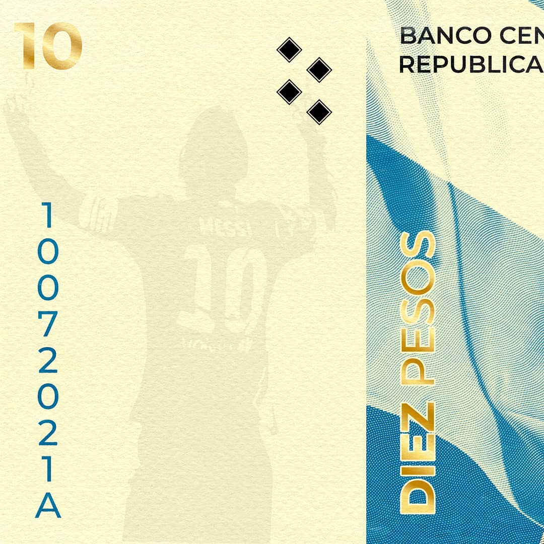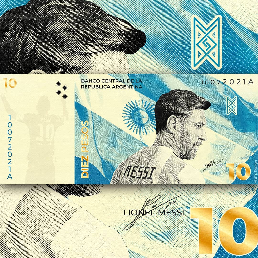 ⚽️ El joven @mattp.design oriundo de Tafí Viejo diseñó un billete de 10 pesos con la cara de Lionel Messi, tras la consagración de Argentina como campeón de la Copa América. Matías como muchos, admira al 10 de la selección y lo manifestó diseñando este novedoso billete.